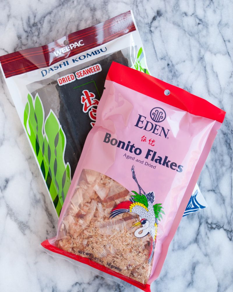 Dashi is typically made from kombu (dried kelp), katsuobushi (dried and smoked skipjack tuna), iriko or niboshi (anchovies or sardines), or a combination of these ingredients, all of which are naturally rich.